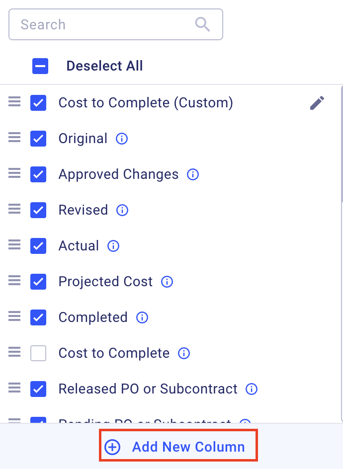 This functionalitygives you full control to define and display the metrics that matter most to your project, or account. You can now create custom columns in the Budget tab and define your own formulas based on existing project data.
